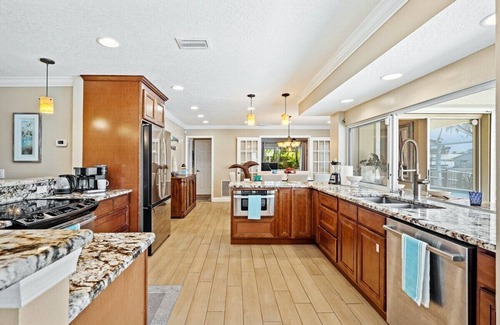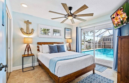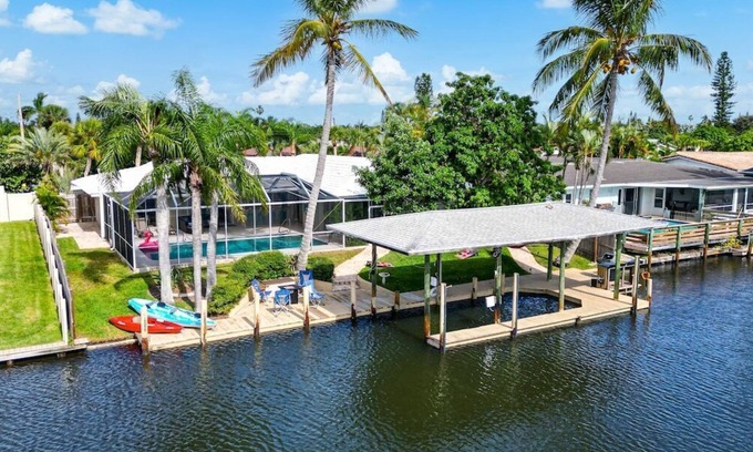 Welcome to your luxury retreat in Cocoa Beach, Florida! This 4-bedroom, 2-bath high-end home on the Banana River caters to families and vacationers. Enjoy a chef's kitchen, cozy living area with river views, a private pool, a dock with a fire pit, and palm trees to create a tropical haven. Witness dolphins and manatees in your backyard or try fishing off the dock. This retreat offers the perfect blend of relaxation and adventure, providing an unforgettable Florida experience for all.