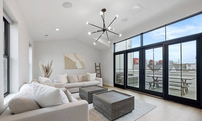 This beautiful home is the perfect space for guests whether they're visiting the city for work, or relaxing with family and friends. A recently finished new build completed in March 2022. High end furniture, finishes, and decor, equipped with everything you'll need for your stay. The 2nd floor terrace has a great view of the downtown Columbus skyline and is complete with a dining table, sofa, grill, and fireplace. Centrally located near the Short North, Arena District, and OSU.