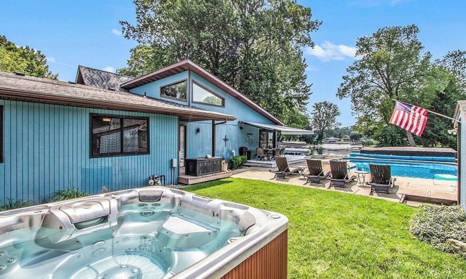 Experience upscale indulgence on the shores of Paw Paw Lake, in our 5-bedroom haven nestled in quaint Coloma, MI. Key features include a heated pool (seasonal), hot tub, outdoor dining and dedicated workspace. Enjoy lakeside serenity with easy access to local attractions and eateries. Ideal for families and groups, this luxurious stay guarantees sweet memories!