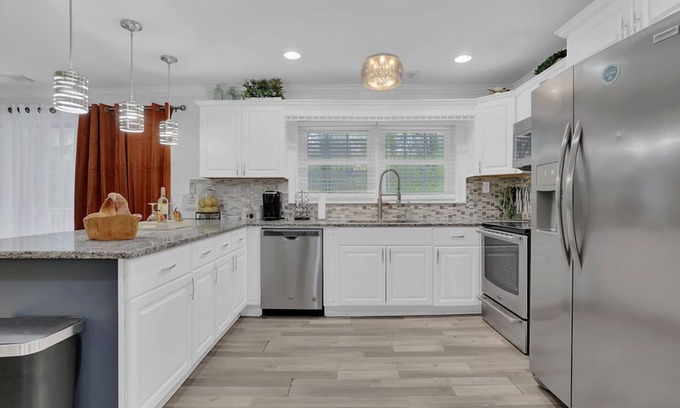 State-of-the-art cooking amenities and spacious granite countertops will provide everything needed to cook a gourmet meal for the entire party. The kitchen bar is where you can quickly sort your ingredients and make a plan that will produce delicious meals for the whole family.