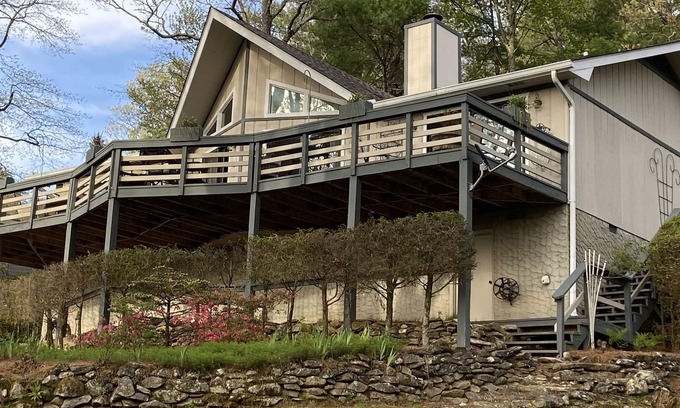 This lovely 3-bedroom, 2-bath vacation rental is nestled in the mountains of Sky Valley. The Master Bedroom features an updated, private ensuite bathroom. Two guest rooms and a guest bath are also located on one level. All beds are king size. The large back deck overlooks the Blue Ridge & Great Smoky Mountains and offers gorgeous layered sunsets. The updated kitchen is equipped with all of the necessities. We offer plenty of parking for guests & a one car attached carport. Many gardens are found on the property with a beautiful variety of plants and flowers.