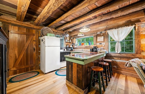 Cozy up in front of a crackling fire on cool evenings. Then watch the glowing embers from your loft bedroom as you retire. Or… on a warm, balmy evening, rock on the old-time front porch swing and listen to the spring peepers and owls as they tune up for their nightly concerts.