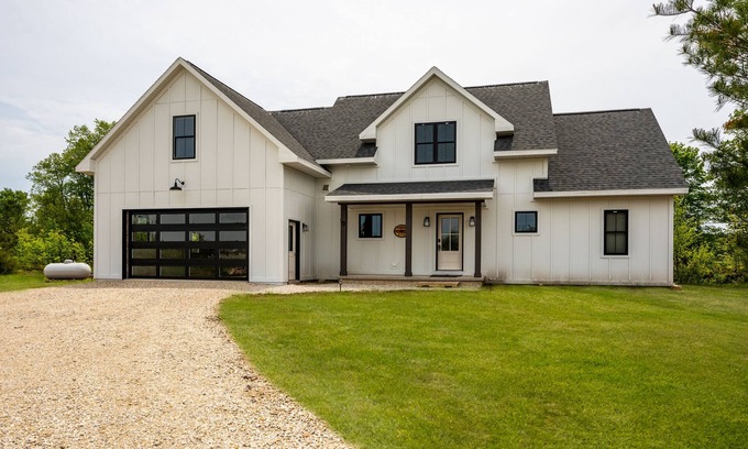 This new construction Modern Farmhouse Style home is located in Egg Harbor. This new construction Modern Farmhouse Style home provides accommodation, featuring Parking, TV, Fireplace/Heating, among other amenities. This House features Parking, TV, Fireplace/Heating, to make your stay a comfortable one.
