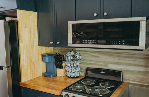 Fully Equipped Kitchen: Prepare your favorite meals with ease using the stove, microwave, and refrigerator.