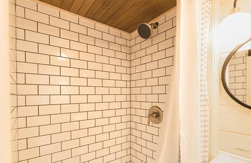 Thistle House does have potable, filtered water, which runs through a custom filter retrofitted for our tiny home...this leads to water pressure that can be a little lighter than what you may be used to at home!