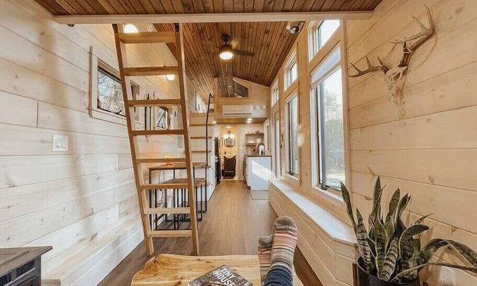 The entire tiny house and surrounding grounds (including sauna and pond) are available for guest use. Please note, while Sage House does have its own dedicated outdoor area with Adirondack chairs, Weber grill, and Breeo firepit, both the pond and sauna are Camp amenities, which are shared among both tiny houses at Camp Greenwood.