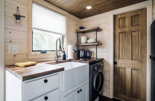 Thistle House does have potable, filtered water, which runs through a custom filter retrofitted for our tiny home...this leads to water pressure that can be a little lighter than what you may be used to at home!