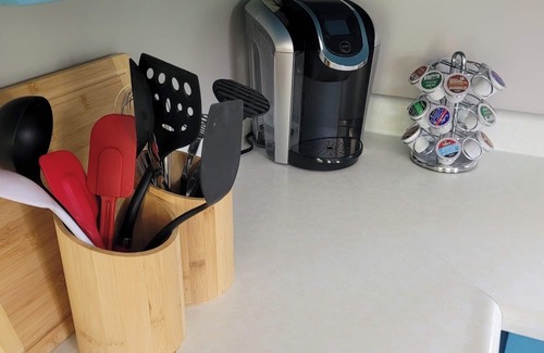 Toaster, blender, hot water kettle, drip coffee maker with filters, BRING your coffee! Keurig BRING your pods!!. Cooking utensils, pots and pans, dishes and silverware, bowls, wine and drinking glasses, children’s dinnerware and plenty more (see pictures).