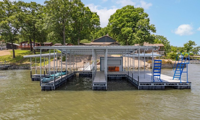 Go outside & relax on the massive back deck or down by the water on the lakeside patio and enjoy the amazing views of Lake of the Ozarks. Hang out all day on the private dock where you will have use of the kayaks and the water mat for tons of lake fun! You are welcome to put your boat in the 12' x 32 ' boat slip (no lift). You're sure to have a wonderful time & make lasting memories with family & friends! You can always book with confidence with Four Seasons Property Management!