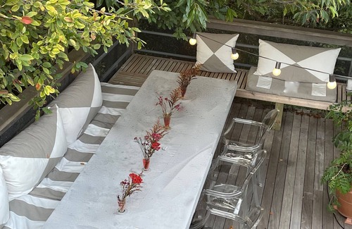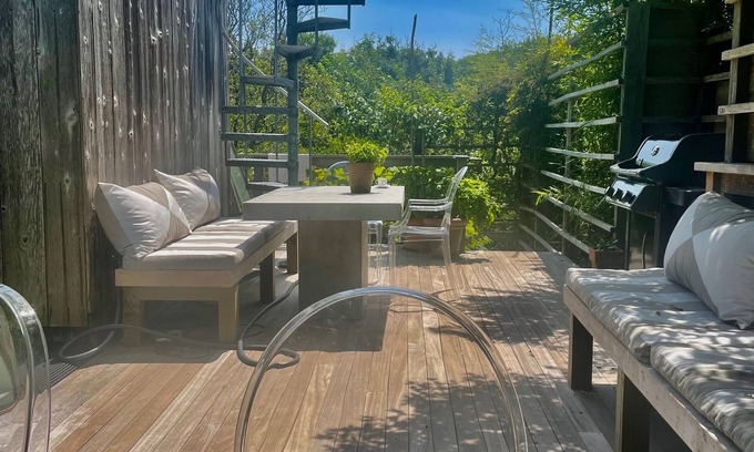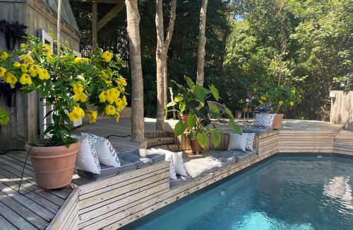 This gorgeous Treehouse in a secluded and private area of Fire Island Pines, encompasses a spa vibe, with many places to relax, entertain, and enjoy. Ocean and Bay Views, a stunning swimming pool and hot tub, surrounded by beautiful gardens, and architectural and design beauty everywhere. One of the most beautiful properties in The Pines.