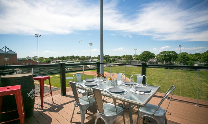 The ground floor of this property is a lounge complete with large screen TV's, pool table, seating, tables, and an incredible outdoor patio in the outfield of Cardines Field! This space is NOT included with your rental, but please inquire about renting it out for an additional fee!