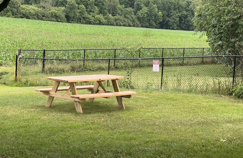 Enjoy breakfast on one of the 2 picnic benches in the large back yard.