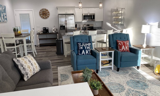 Villa: 4 bedroom, 2.5 bath Villa at the lake! Part of 2 separate villas that were completed in late 2021. Both have been stocked with brand new furnishings and linens to make your lake trip comfortable and one to remember. HAVE A LARGE GROUP? ASK US ABOUT ADDING THE ATTACHED VILLA...