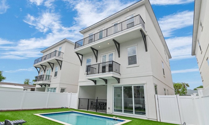 The heated** swimming pool and billiards room provide a pleasing oasis after a fun day in the sun. Tidal Time Estate is near Destin, Florida's main attractions, including nightlife, golfing, fishing, shopping, and more. The luxurious appointments flowing through Tidal Time Estate will renew your senses. Enjoy the open concept living area, multiple King Bedroom, wood plank tile flooring, crown molding, a game room, quartz countertops, custom cabinets, large tiled showers, a brick paver driveway, designer furniture, and a private fenced-in backyard.