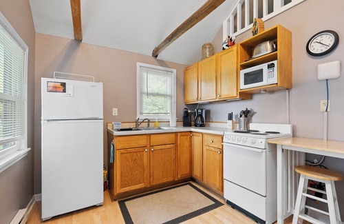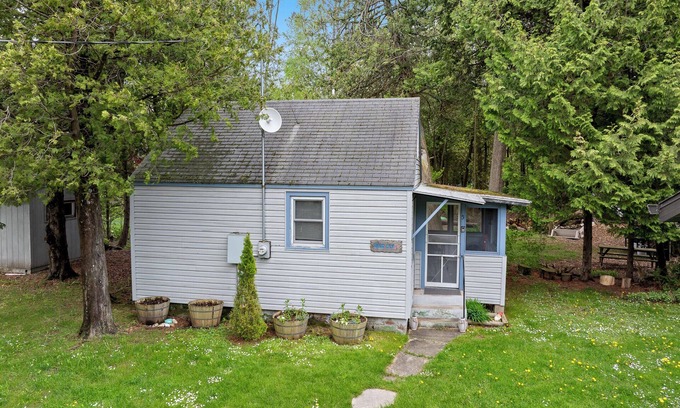 This cozy retreat offers 1 bedroom, 1 bathroom, main living space with pull-out couch, a fully stocked kitchen and a screen porch.