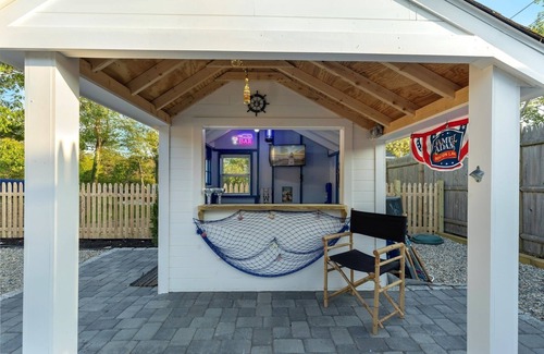 Tiki Bar, Fenced Backyard, Pond View | Cottage near Beaches is located in Dennis Port. Tiki Bar, Fenced Backyard, Pond View | Cottage near Beaches provides accommodation, featuring Oceanfront, Wellness Facilities, Child Friendly, among other amenities. This House features Oceanfront, Wellness Facilities, Child Friendly, to make your stay a comfortable one.