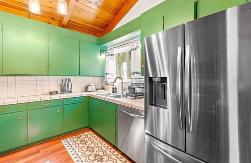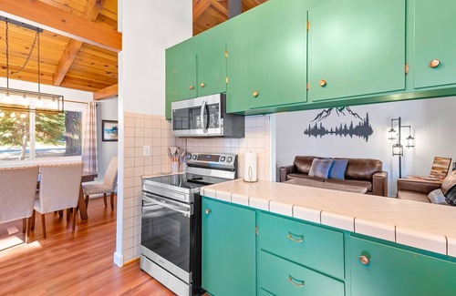 This cozy cabin sleeps 6, with 2 comfortable bedrooms, a pullout couch, and 1 bath—perfect for families or small groups. Unwind by the warmth of the woodstove after a day of exploring, or enjoy a movie night with smart TVs in every room!