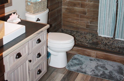 You will love the feel of this peaceful space.The rustic exterior is landscaped in plants, shrubs & trees that bloom throughout the seasons. The inviting woodland setting is a humble transition to the charming, distinctively unique place that awaits your vacation.