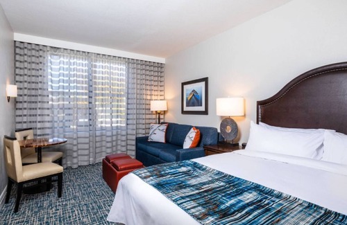 Immerse yourself in the vacation lifestyle at Marriott's Timber Lodge. From our vacation ownership resort in Heavenly Village, South Lake Tahoe, take the gondola up the mountains to ski. Hike Mount Tallac Trail above the southwest shore of the lake or explore Emerald Bay and Carson Hot Springs. After a day of fun on Lake Tahoe, try delicious Mongolian-style cuisine at our resort's signature restaurant, FiRE + iCE Grill and Bar. Enjoy our modern fitness center, outdoor pool, whirlpool and sauna without incurring any resort fees during your vacation. Our family-friendly resort also offers complimentary Wi-Fi. Relax in comfortable guest rooms with kitchenettes, or choose a spacious one-, two- or three-bedroom villa with a full kitchen. These condo-style villa vacation rentals for your time in Lake Tahoe include a fireplace, master suite, jetted tub and a washer and dryer. With an ideal blend of comfort, luxury and recreation, Marriott's Timber Lodge resort welcomes you to your South Lake Tahoe vacation.