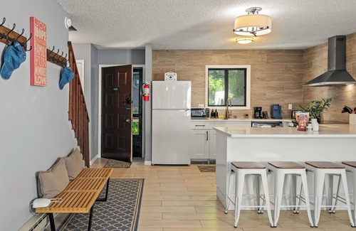 Nestled in the heart of the Pocono Mountains and just minutes from Camelback Resort, this treetop townhome blends cabin vibes with comfort-driven design. Surrounded by forest views and fresh mountain air, it’s the kind of place where you can sip coffee on the balcony one moment and hit the slopes or waterpark the next.