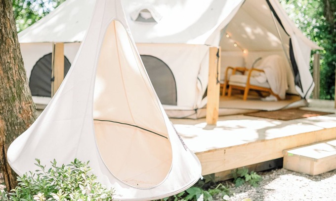 Enjoy a modern stay in our Timberwolf mobile unit, surrounded by beautiful nature! Relax inside with comfortable furnishings and visit the cozy coffee shop on the property. It's the ideal spot for your next adventure!