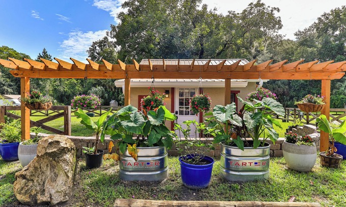 Are you craving a break? This quaint, comfortable cabin is perfect for solo travelers and couples with "Wanna get away vibes". Inside enjoy the charm of stained ceilings, live wood oak, a kitchenette, queen bed, and a beautiful bathroom with a walk in shower. With designated parking and steps away from the restaurant you can enjoy the convenience and comfort. Just 30 minutes to major Florida Springs. Enjoy the real Florida at day and The Cove at night!