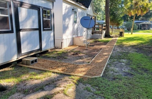 Fantastic Tiny House with easy access to the beach & shopping! Everything you need for a great beach vacation! Don’t let the word “Tiny” fool you! This property hosts a fully equipped kitchen, a private bedroom with a queen bed, a bathroom with a tub/shower combo & the living room has a queen sleep sofa. A separate storage building houses a full-size washer & dryer only for our guests use. Great quiet location only 6 miles from the beach & 8 miles from the Tanger outlet in Foley!!