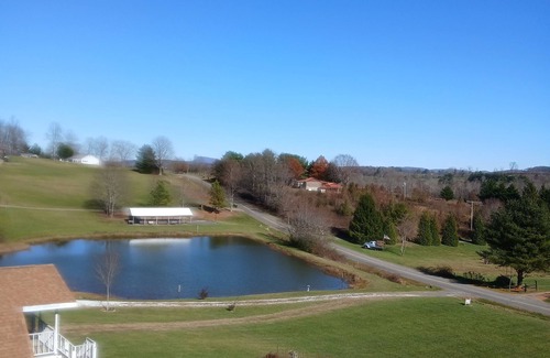 Experience the parkway like a local in this charming 1-bedroom cabin. With heating and AC, hot water .small refrigerator,microwave toaster oven k cup coffee maker. guests can enjoy beautiful scenery , screen porch and small fishing pond.full size bathroom, Queen size bed(has kids matress as well.)