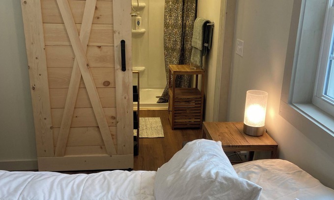 This is a charming 1 room (175 sq ft) alternative to a hotel room right in the heart of the trendy south end of Burlington. Walk to Breweries. Newly renovated. High ceilings, stained glass windows, private and close to beach. Heat pump for heating and AC. Perfect for a single or couple to enjoy Burlington. Off-Street parking on-site. Please note, there is no use of back-yard.