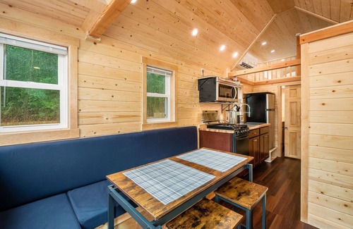 This tiny home has plenty to offer for a relaxing stay. Like our other tiny home experience enjoy star gazing from the firepit or under the sky light in the loft. This property sits on over 60 acres of private woods shared only by the three cabins on the property. There is one other cabin nearby and it separated by parking. Walking trails throughout and ready to be explored. Tons of wildlife near and far with this tiny home only 15 minutes from Hocking Hills state parks and reserves.