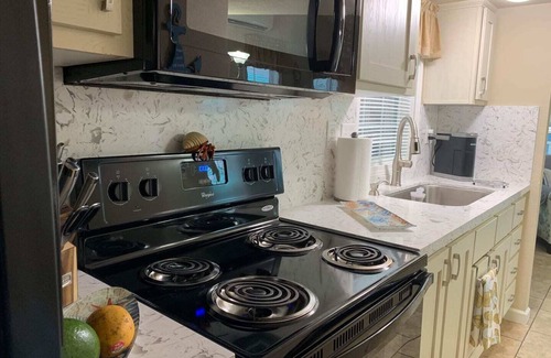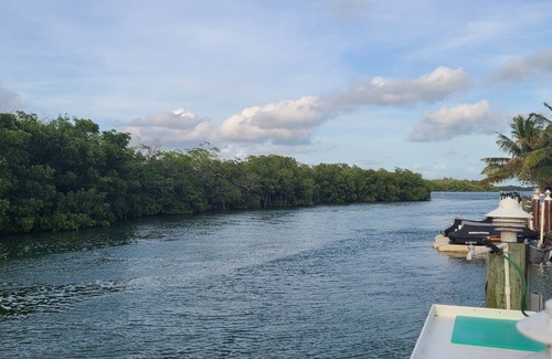 Bring your boat, rent a boat or simply enjoy our two kayaks on the property in this waterfront oasis. Explore the shallow water inlets or the nearby sound and watch for the Manatee or Dolphins which frequent these waters. The property sits across from protected mangroves at the boundary of the Everglades National Park. Private 41ft dock on a deep water canal with a 10k Ibs boat lift. Fish cleaning table and fishing poles included... catch your dinner right from the dock! New underwater fish light creates a visible aquarium off the dock at night attracting bait fish and larger predictory fish. LED dock post lamps, cafe lights in tiki and large LED lamp for evening cookouts. Easy access to Manatee Bay and Barnes Sound, less than 30 minutes from open ocean. 3 beach areas within 5 minute boat ride. Tiki hut with fan/charcoal BBQ, TV and bar seating. Washer and Dryer in unit.