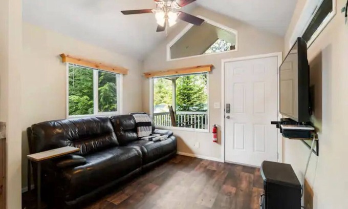 Experience a magical stay at Ashford's coziest tiny home vacation rental! Enjoy comfort and tranquility in our wooded neighborhood of charming cabins. Watch breathtaking deer sightings from the back porch while relaxing in the soothing hot tub. Skip the traffic with a quick 1-mile drive or stroll to Mt. Rainier's entrance. Your ultimate mountain adventure awaits! Book now and immerse yourself in the perfect vacation retreat in Ashford, WA!
