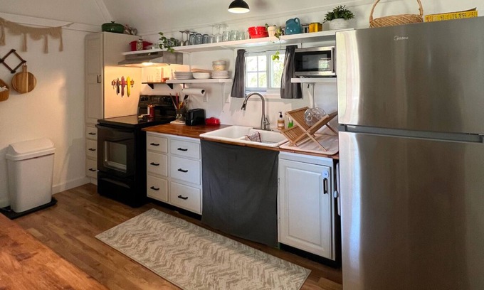 This 2 bedroom, one bath Tiny Home has one Queen bed, and 2 twin beds. There is also a Pack-N-Play available for children. Tiny Home is only 3 miles to Monster Mountain MX Park, less than 10 minutes outside the city of Tallassee, AL, where you will find several fast food, family owned restaurants and grocery stores and Walmart. 25 minutes from Montgomery, 25 minutes from Lake Martin, 45 minutes from Auburn, AL.