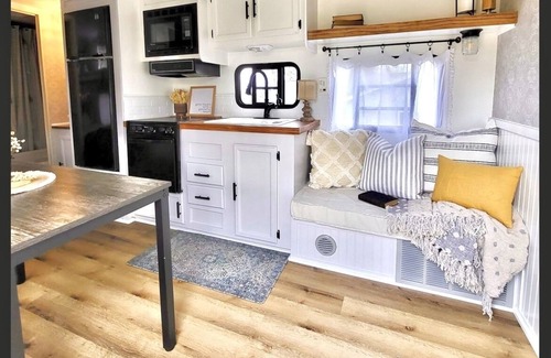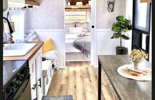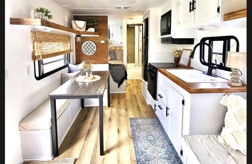 Located in Leeds, UT this modern 29 ft RV completely redone inside and out with a cute barn door master bedroom will be a memorable night’s stay. You’ll enjoy the beautiful grounds of Leeds RV Park including a washer/dryer in the clubhouse, a dog park, and other amenities. There is plenty to do as Zion National Park, Coral Pink Sand Dunes, Sand Hollow Reservoir, Quail Lake, Snow Canyon National Park, and many local hikes are ALL within just a 40 minute drive from your front door!