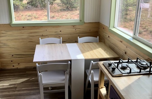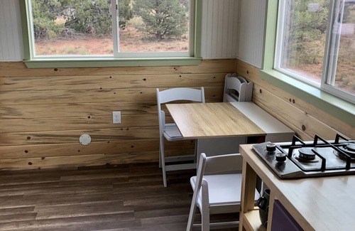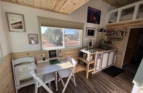 Welcome to your sustainable basecamp for a Grand Canyon adventure! Seated on an acre of beautiful high desert, the Juniper Tiny House is a comfortable retreat after a day exploring the red rocks and trails. Relax, unwind, and immerse yourself in everything the land has to offer. Though you have a tiny house neighbor, you are separated by a large Juniper tree and will have the privacy you're looking for in this peaceful region.