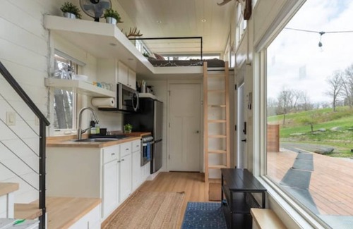 Welcome to "The Tiny" at The Hemptons in Upstate New York! The not-so-tiny house is 400sf with plenty of space to stretch out. Each of the two bedroom lofts have a comfy queen bed on a low profile frame. The kitchen is equipped for basic cooking (read: Not good for Thanksgiving, but perfectly suited for standard cooking endeavors). Although we'd encourage you to check out many the local eateries (see below)! The bathroom is full size and likely bigger than the one in your first NYC apartment.