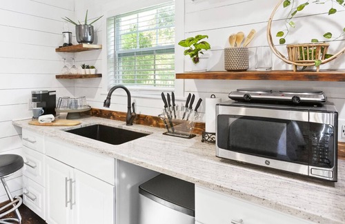 Gold Farm has a tiny house next to the main house, with a private entrance, for the traveler who wants to stay in the countryside and have the benefit of being in the town, with a 7-minute drive to unique shops, restaurants, malls, bars, live music, and other attractions. Our house is situated on almost one acre of land in the heart of the beautiful Town of Fairview, the upscale part of McKinney.