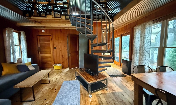 Newly renovated tiny house with wrap around porch and lots of character! Spiral staircase up to loft with two double beds. Queen sleeper sofa in the lower level. Full bathroom and kitchen. Located one mile from downtown Findley Lake, four miles from Peek n' Peak ski resort and close to many wineries along Lake Erie.