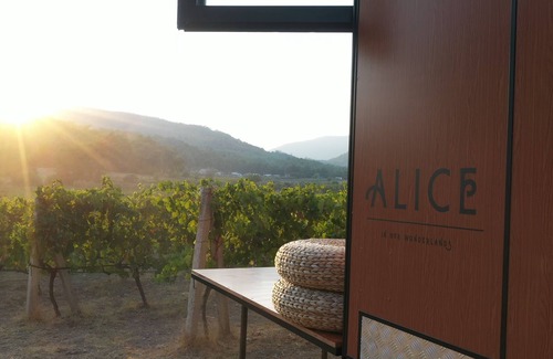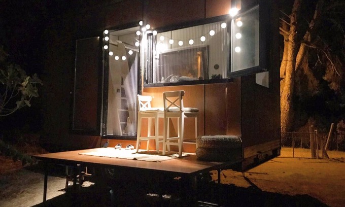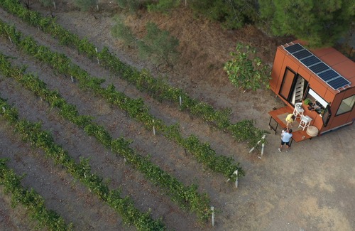 Enjoy a stay at a completely off grid tiny house located in a vineyard. We have all the kitchen amenities, bathroom, portable toilet, 2 double beds, bar desk in front of a large window facing to the best view in the region.