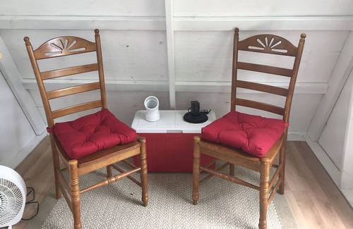 The Off Grid A-Frame Cottage is in a private campsite, next to our hidden pond adjacent to the Mississippi River. It features a comfortable queen bed with crisp, clean sheets, comforter, and pillows. It is equipped with 12 volt lighting and a fan, and occasionally air conditioning (please confirm availability prior to booking). It is heated in the spring and fall. The A-Frame Cottage is just a short walk to our bathroom cabin; clean and with flush toilets and enclosed outdoor shower.