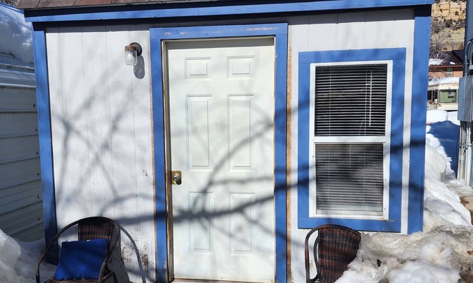 Tiny Home feel in this converted shed to make a nice little Cozy Comfort living. Short walk to the river. Has a shared bathroom area that is in the main building. Common garden area is open to hang out in and BBQ. Great place to bike, ski, paddle board, fish, hunt, ext.