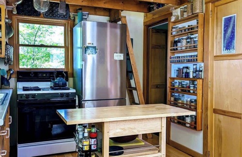 This tiny house is the perfect spot to enjoy the best of Maine, with spectacular 180 degree views of the bay and 150 feet of private beach!! It is located in Trenton, Maine with easy access to all of the area amenities. Acadia National Park and other attractions are near, yet you are in a peaceful, quiet and beautiful waterfront setting. Watch the tide come in, see the seals swimming up to the shore, listen to the loons, or watch the deer graze in the yard with your morning coffee. What should we do today? Go hiking, biking, sailing, kayaking, antiquing, or just sit and watch the glorious sunset and ever-changing waterfront view from the picture windows. A dinner by the shore on the picnic table and a fire pit under the stars are a perfect ending to a fun-filled day. Even romantic, you might say.
