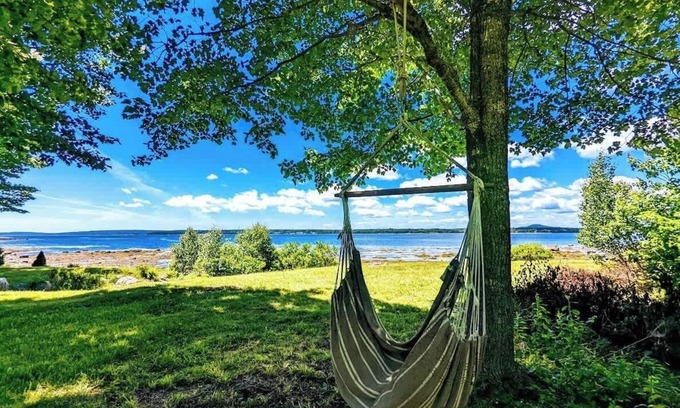 This tiny house is the perfect spot to enjoy the best of Maine, with spectacular 180 degree views of the bay and 150 feet of private beach!! It is located in Trenton, Maine with easy access to all of the area amenities. Acadia National Park and other attractions are near, yet you are in a peaceful, quiet and beautiful waterfront setting. Watch the tide come in, see the seals swimming up to the shore, listen to the loons, or watch the deer graze in ...