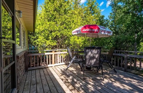 Surrounded by trees on both sides, this quiet part of Tobermory is truly peaceful and serene. We note there are quiet neighbours on either side of the cottage. Plenty of deck space on the front and back of the cottage, including a BBQ off the kitchen and beautiful views of the water from the front of the cottage.
