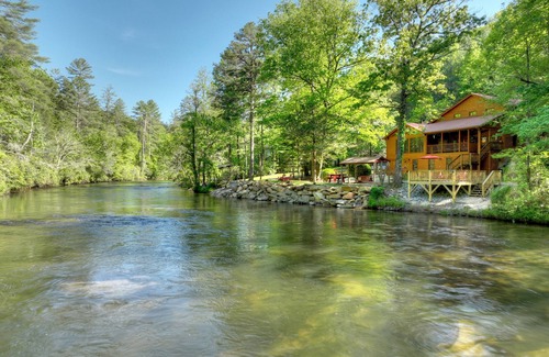 Toccoa River Frontage - Steps from the water, Sleeps 10, Fire Pit, Pet Friendly | Cabin in Blue Ridge