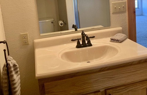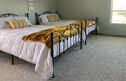 Large open floor plan home with a cabin fell. You'll love watching the cows and wildlife every evening as you watch the sunset. Plenty of space to gather and cook for guest in our large kitchen with seating for 12. Cozy beds and plenty of bathrooms for everyone. 1 King and 3 bathrooms downstairs and 1 King with 4 Queens and 2 bathrooms upstairs. Kitchen, Dining Room, Living and Family room are on the main floor as well.
