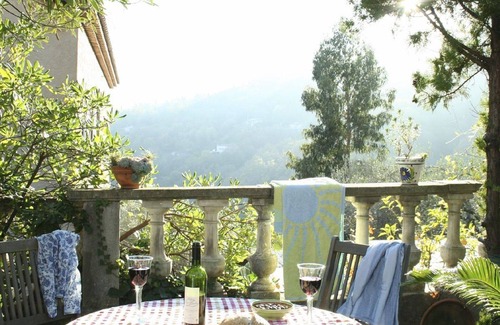 In the Top Apartment of "La Bastide Saint Christophe" you will feel on top of the world in this cosy yet spacious apartment with its panoramic views over the wooded hills and mountains.