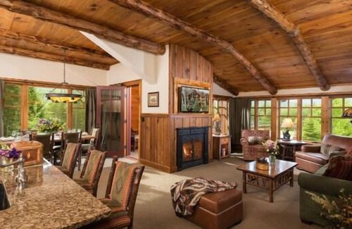 The resort features 85 exquisitely appointed suites that offer a blend of rustic elegance and modern luxury. Each suite is designed to provide a cozy yet upscale atmosphere, with Adirondack hardwood furnishings, plush pillow-top beds, and cast iron gas fireplaces that add a warm, inviting touch. The suites also feature jetted tubs for a relaxing soak after a day of adventure, as well as high-definition LCD televisions for entertainment. Many suites come with private balconies, offering stunning views of the surrounding mountains and forests.