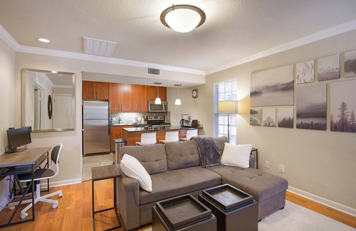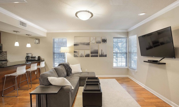 One bedroom condo perfect for singles/couples looking for a longer term (+30 days) stay to explore all Austin has to offer. Furnished with a king bed and sleeper sofa, guests can relax in style. This charming property is nestled in a vibrant North Central Austin neighborhood, 15 mins from downtown and UT, with a plethora of shops and entertainment nearby.