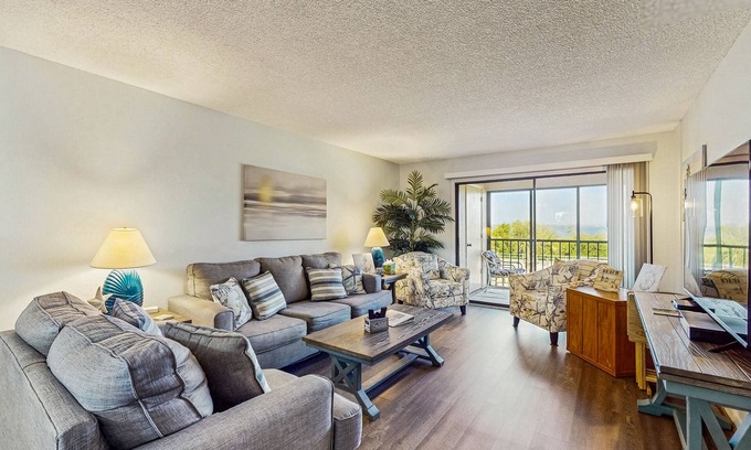 Unwind in coastal comfort at this bright and inviting riverfront condo. This home is a perfect escape for snowbirds, couples, or small families. Nestled just minutes from pristine beaches and scenic nature parks, this top-floor unit offers peace, privacy, and resort-style amenities to make your stay unforgettable.